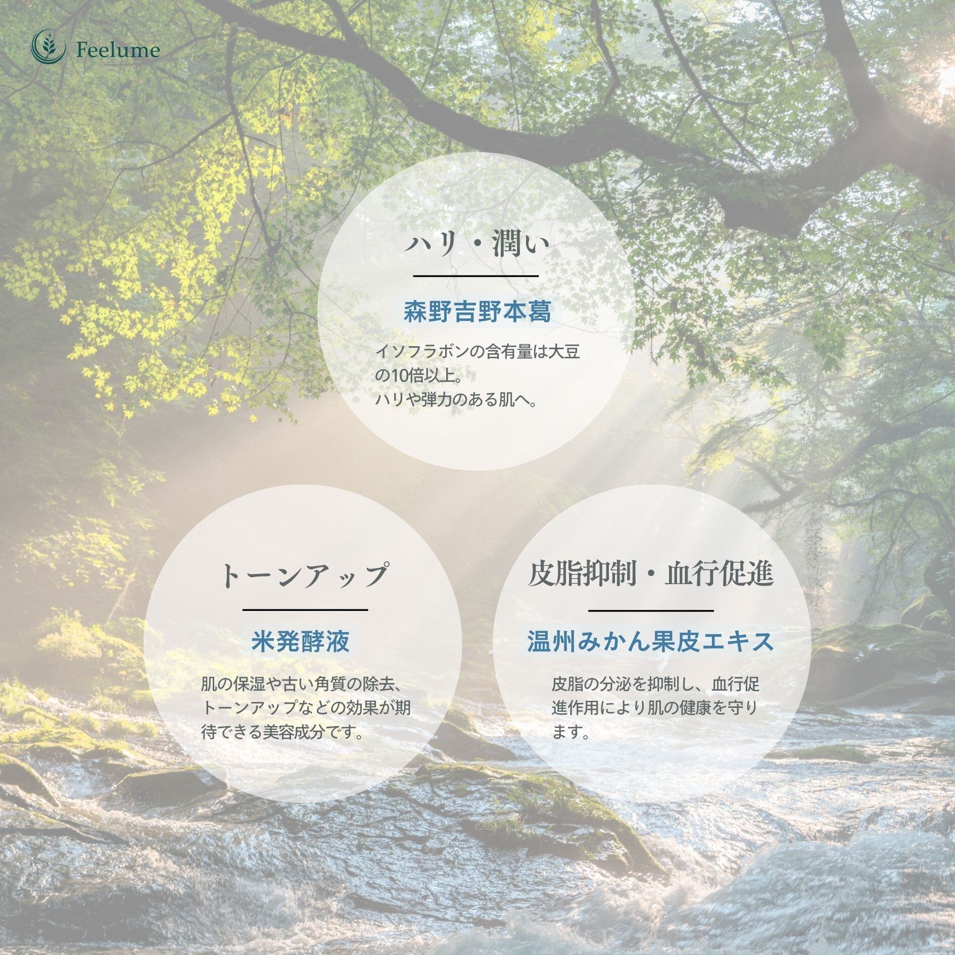 植物と発酵のやさしい処方で、肌に負担をかけにくく、日中もしっとり感を保ちながら、さらりとした美しい肌印象へ導きます。